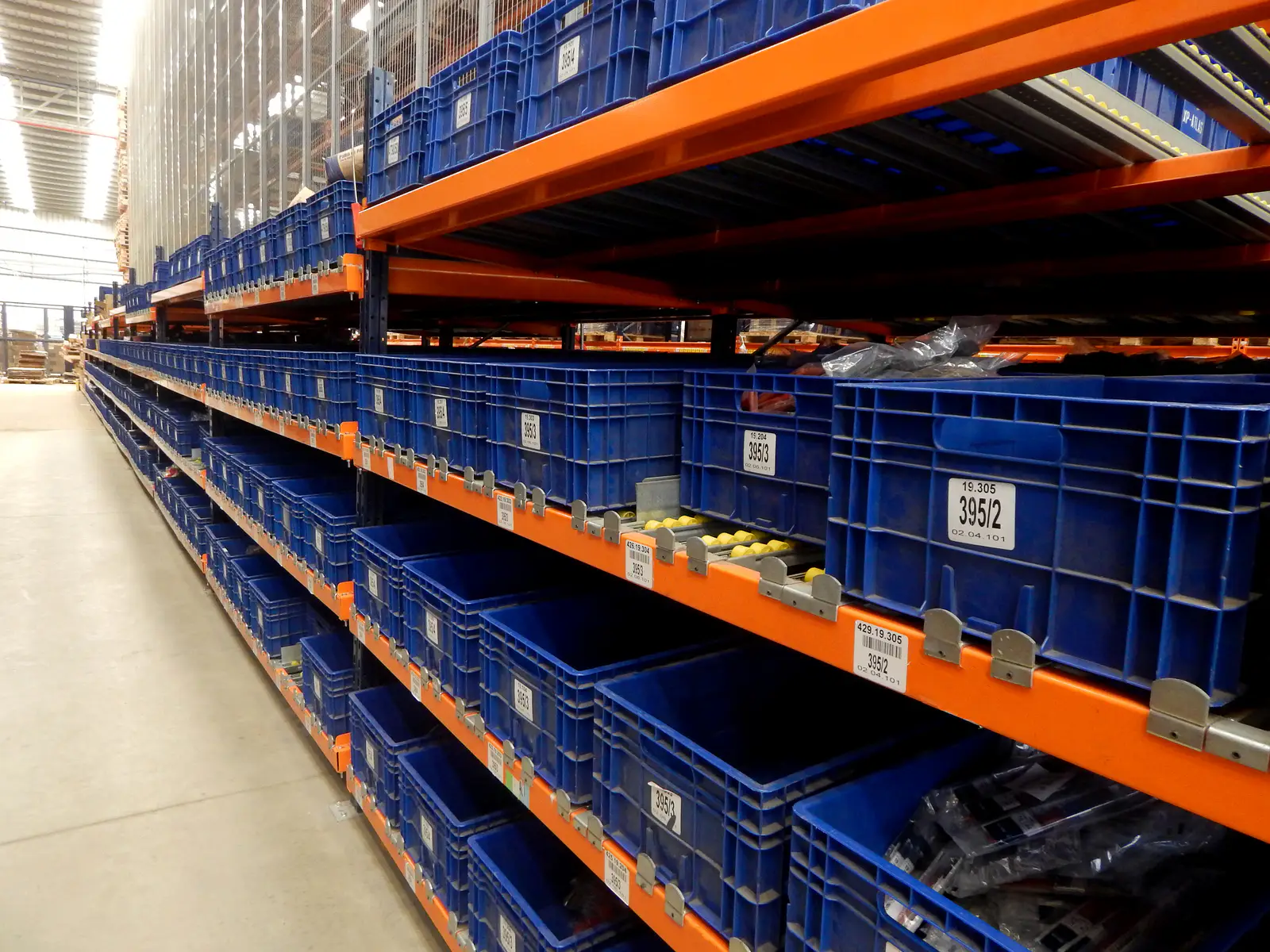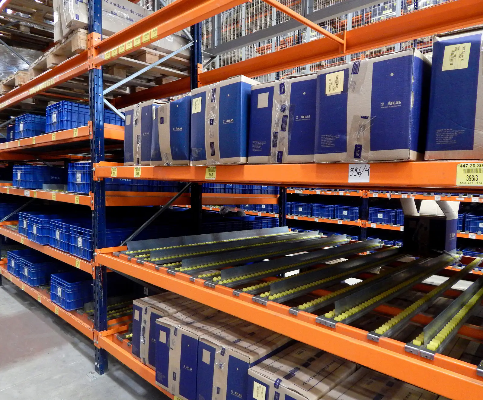 Flow Rack Bertolini, é ideal para mercadorias e cargas de porte pequeno – caixas plásticas, caixas de papelão ou itens individuais, e alta rotatividade dentro do estoque, destinado a itens do tipo A, na curva ABC.
